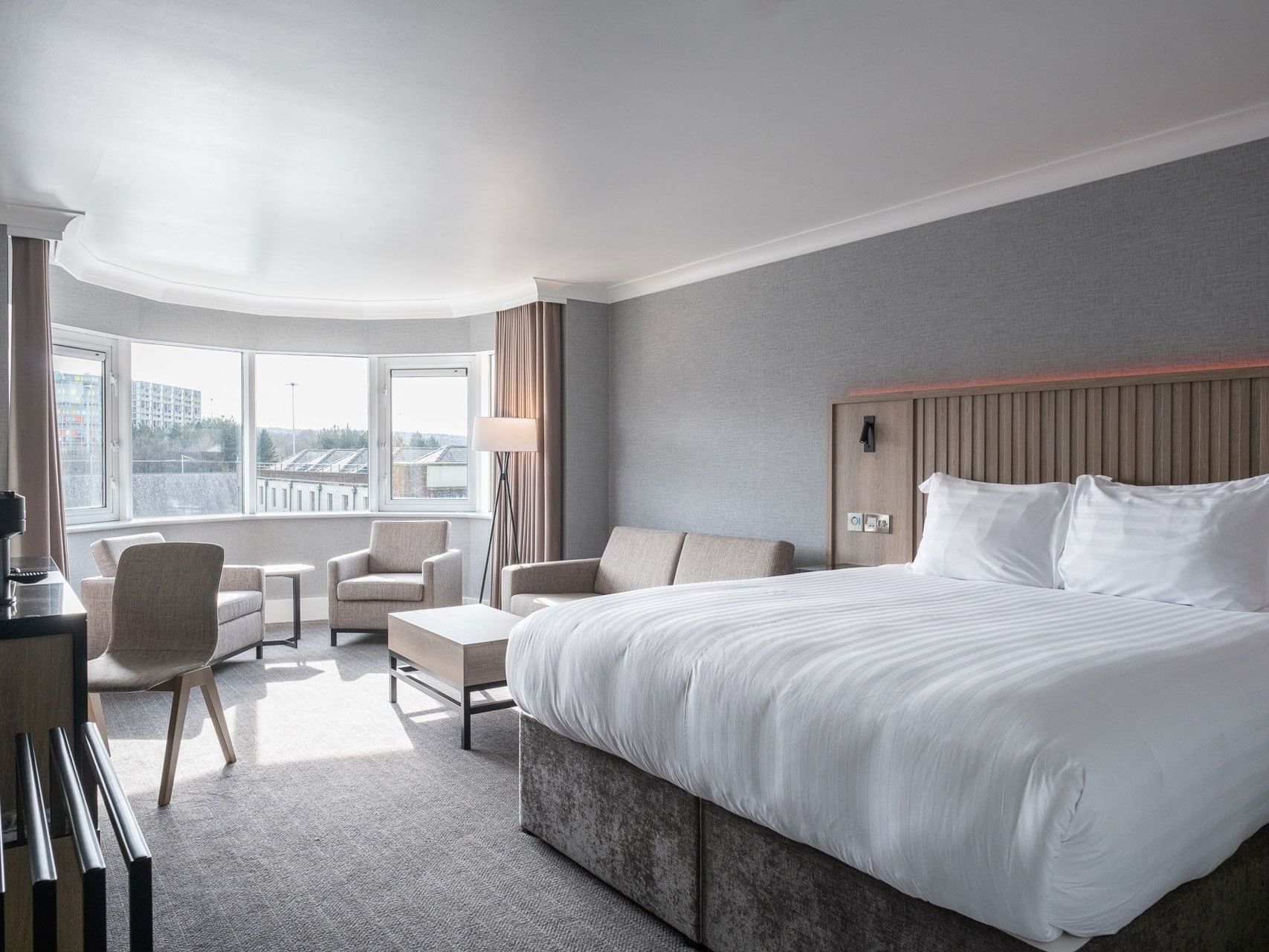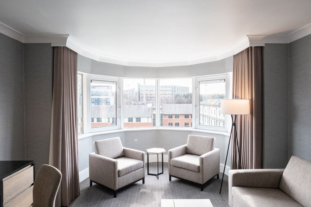 Unwind in a spacious standard room, with a super king bed, cosy seating area, and a modern bathroom with either a rain shower or bathtub.