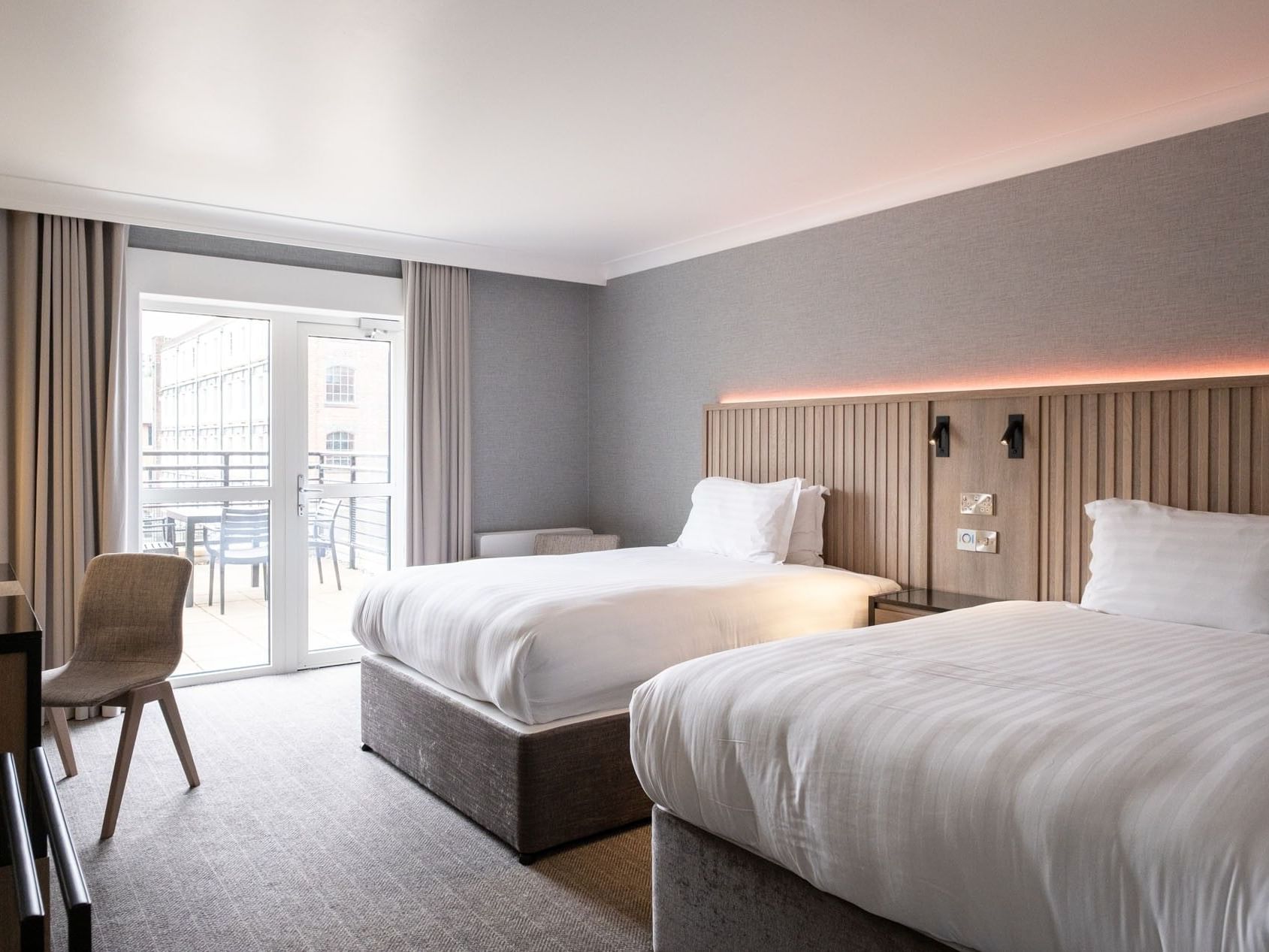 Perfect for friends or families, this room offers two double beds, a private balcony overlooking Victoria Quays, and a bathroom with shower or tub.